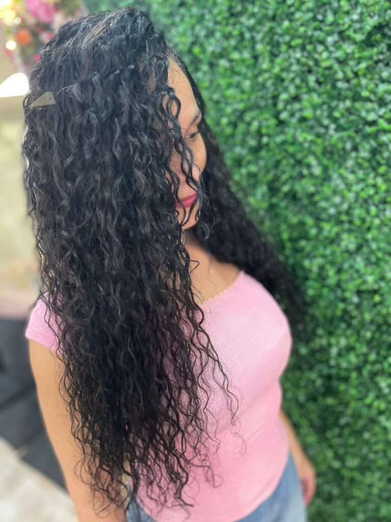 Mega Hair cacheado 100% humano que devolve definição, volume e confiança em cada detalhe.